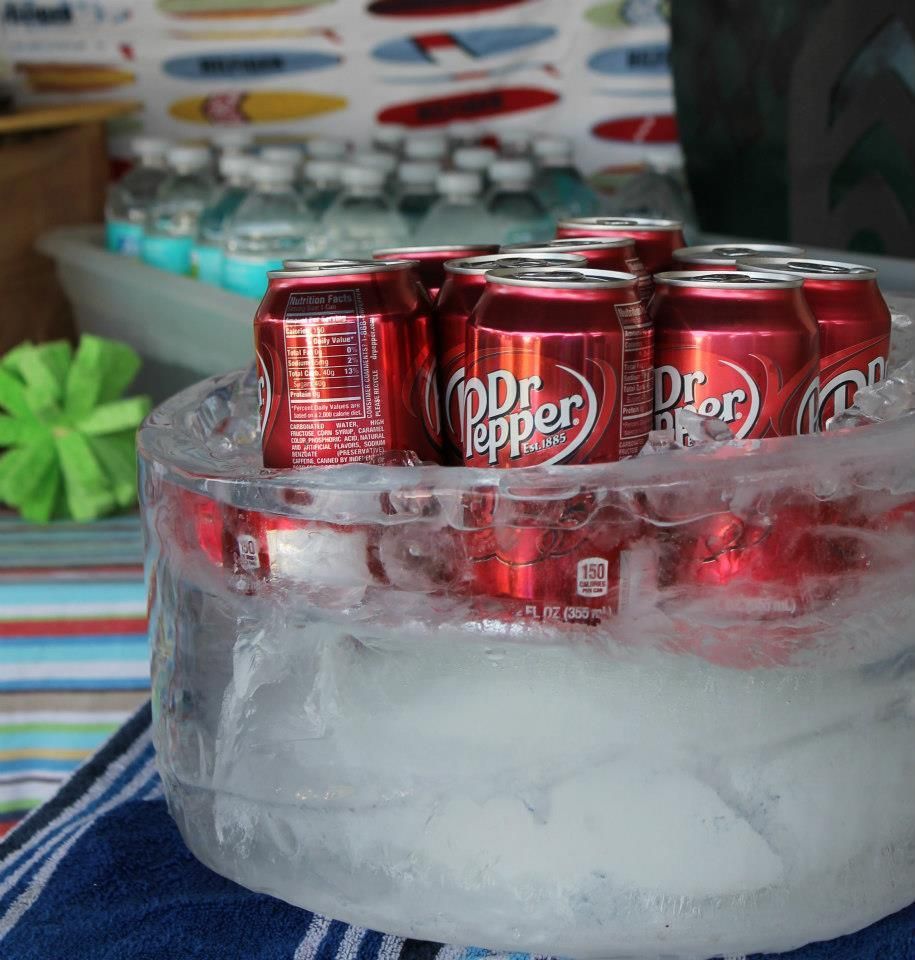 You will need to start this project one week before your party. Tape your smaller bucket to the center of the larger one from the sides, so it dangles in the middle. Slowly add water to the larger bucket adding weight to the smaller one as needed to keep it in place. (Remember that water expands as it freezes and leave room for that…I may have forgotten that step) Then carefully place the whole thing in your freezer for several days. After it is frozen solid, remove your bucket from the freezer and take the ice out of the bucket. You may need to run it under water for a while to get it to release, but that is